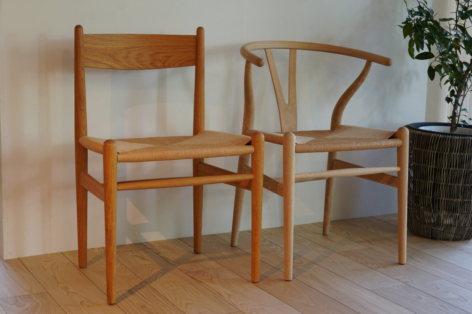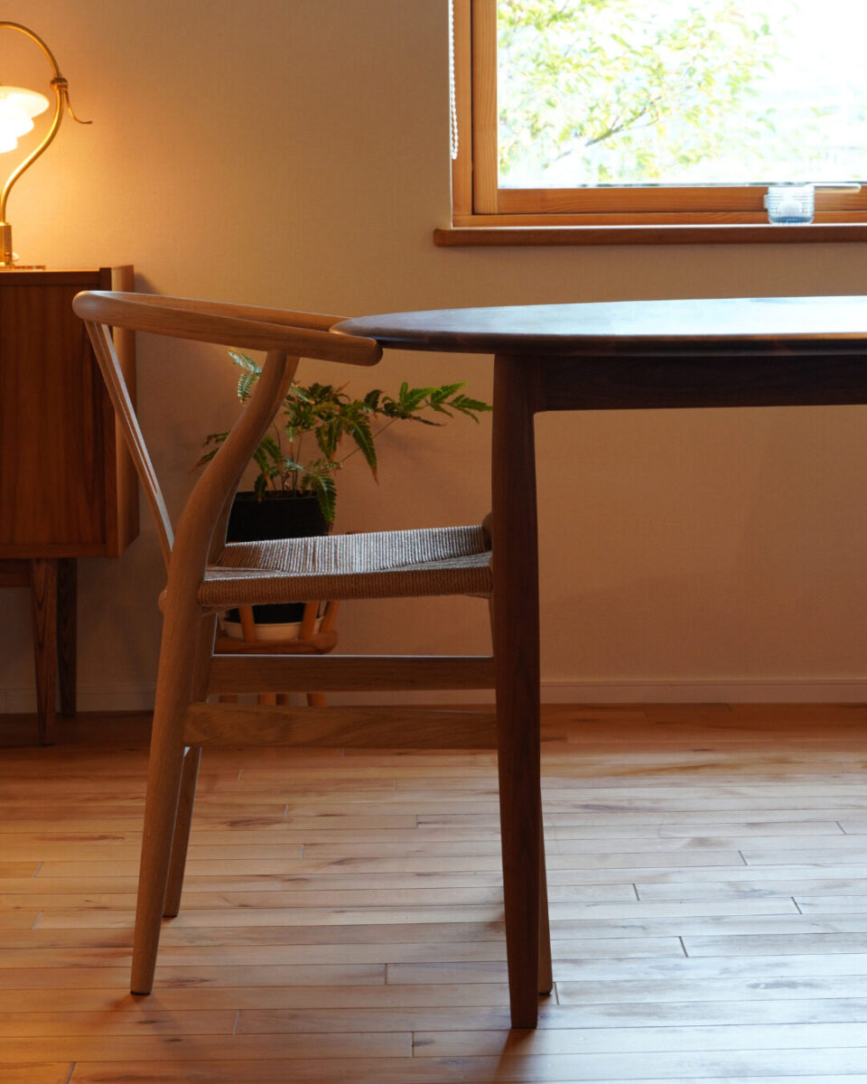ウェグナーの代表作として知られる「CH24(Yチェア)」と、CH36はどこか雰囲気が似ています。ただ、CH24はアームが広がっているため、ダイニングテーブルにすっきり収まりません。その点、CH36はテーブルにしっかりと納まるので、間取りや使い方に応じて選び分けるのもおすすめです。