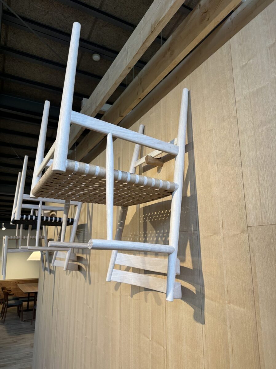 シェーカー教徒は、使わないときに椅子を壁に掛け、掃除がしやすいように工夫していました。そのため、背もたれ部分は「梯子」のようなデザインになっているのが特徴です。