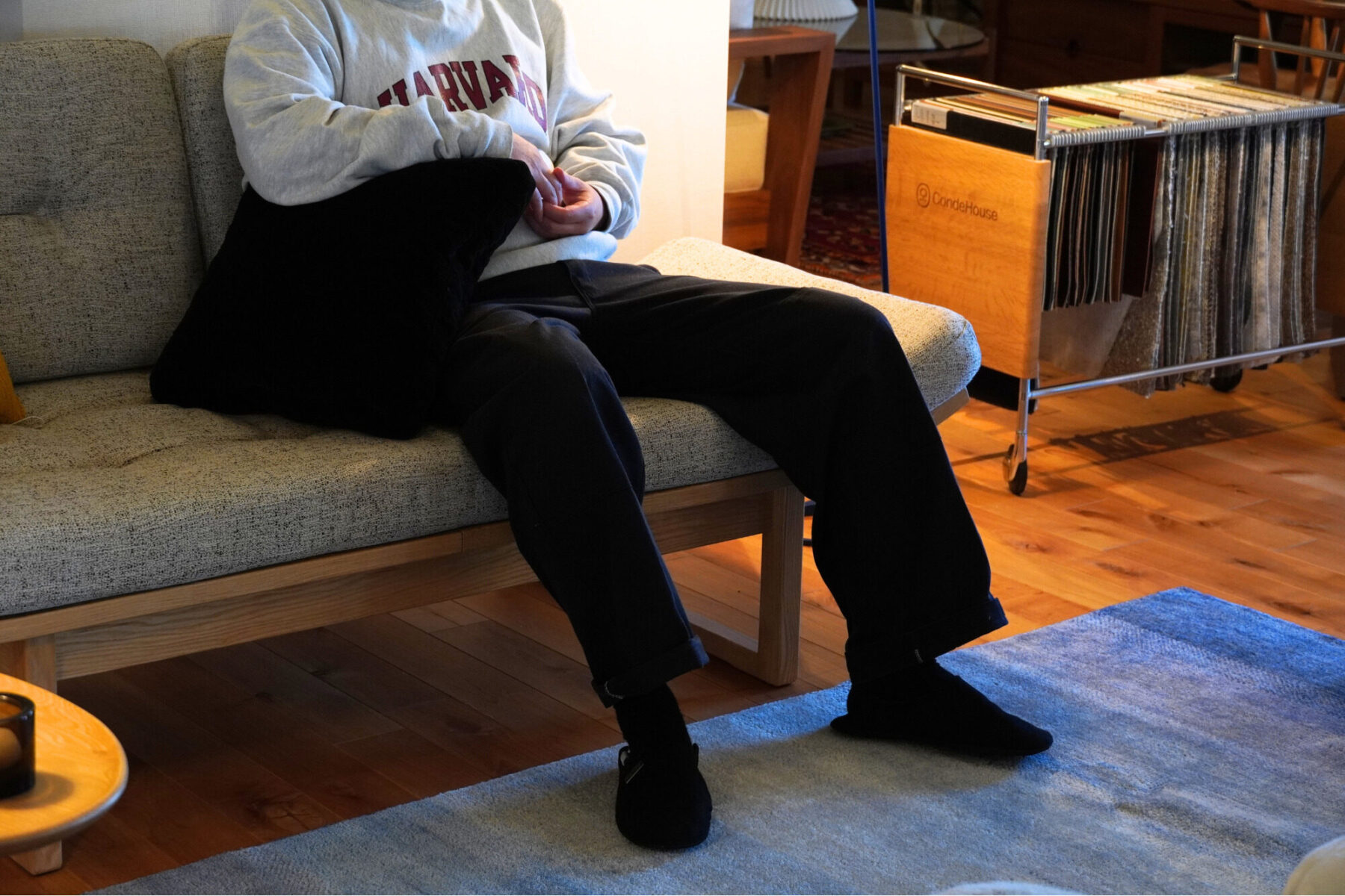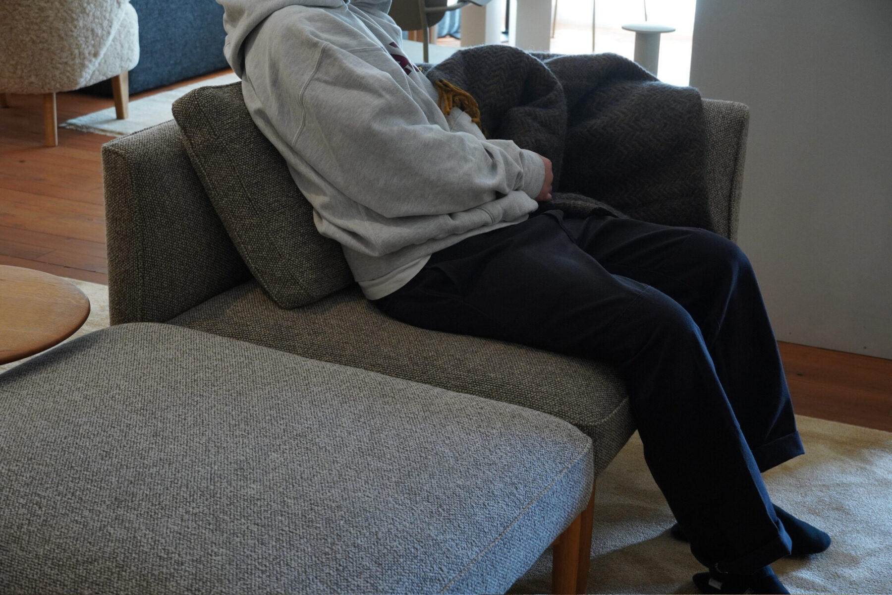 座面が広いため、足をあげて体をソファに預けるようにして座ることが多くなります。