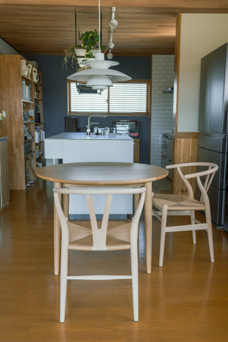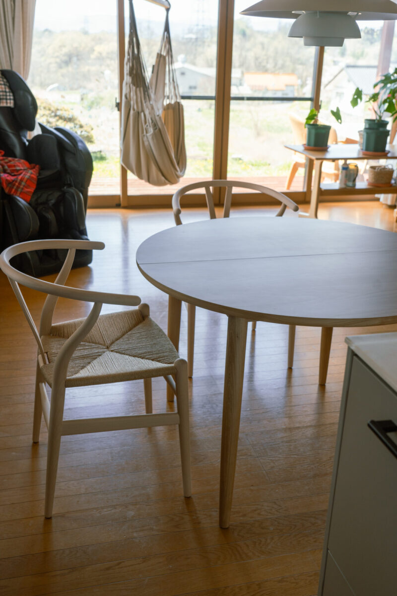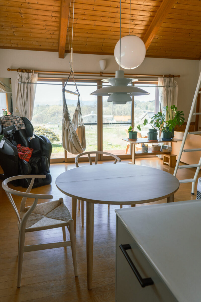 北欧照明と丸テーブルでつくる、やさしいダイニング空間~YチェアとマムEXテーブルのある暮らし~(東御市)