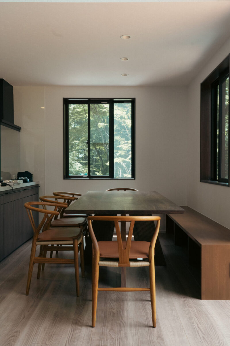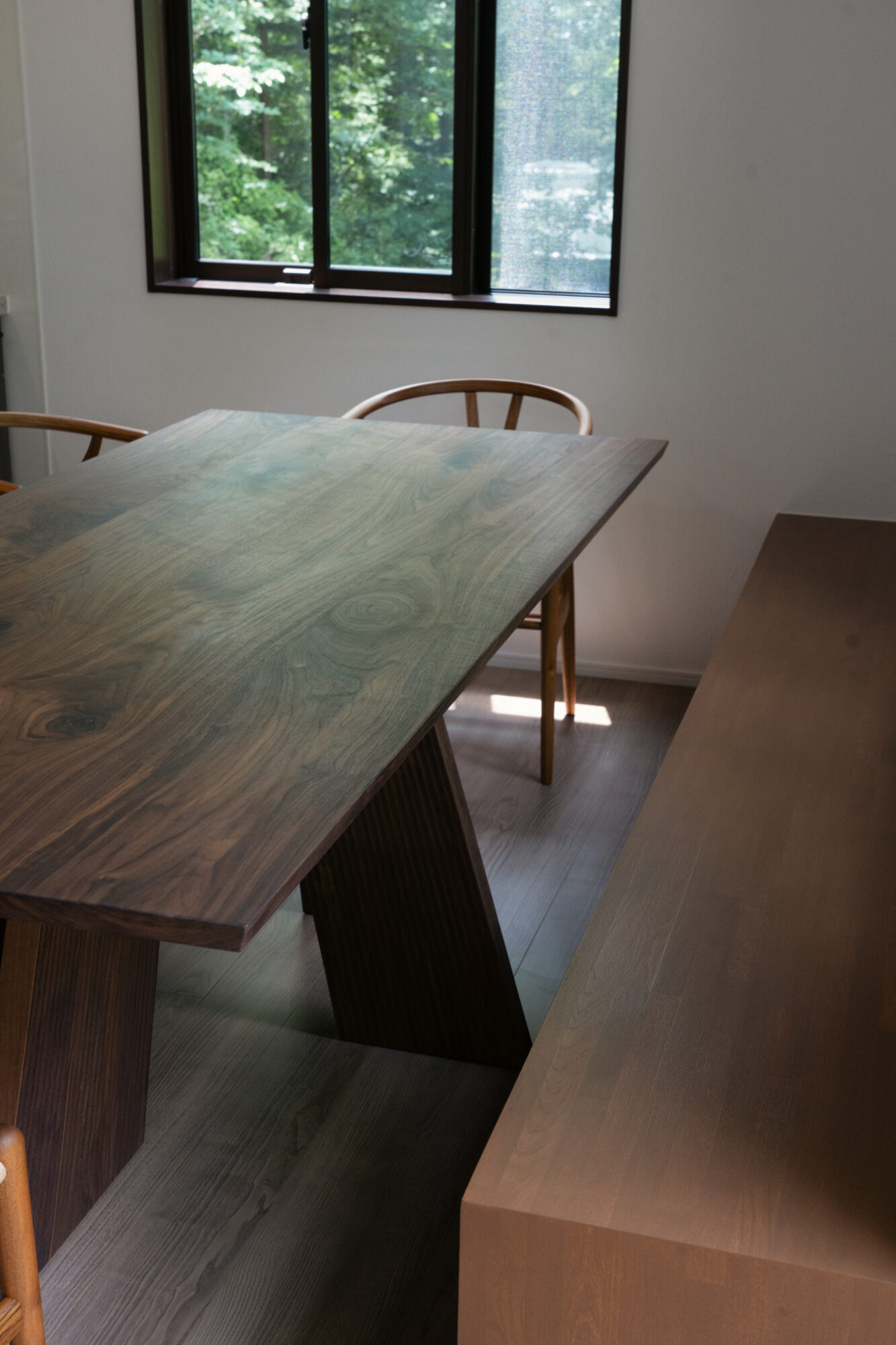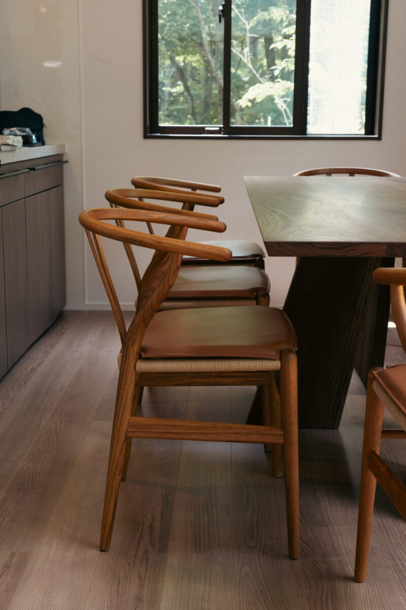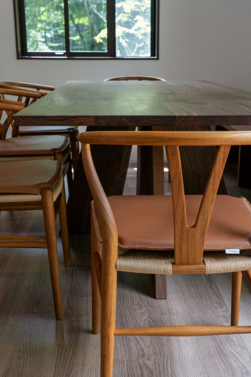 ウォルナット無垢の重厚感が映えるダイニング~カンディハウス〈ハカマ〉とチーク材Yチェアのある暮らし~(軽井沢)