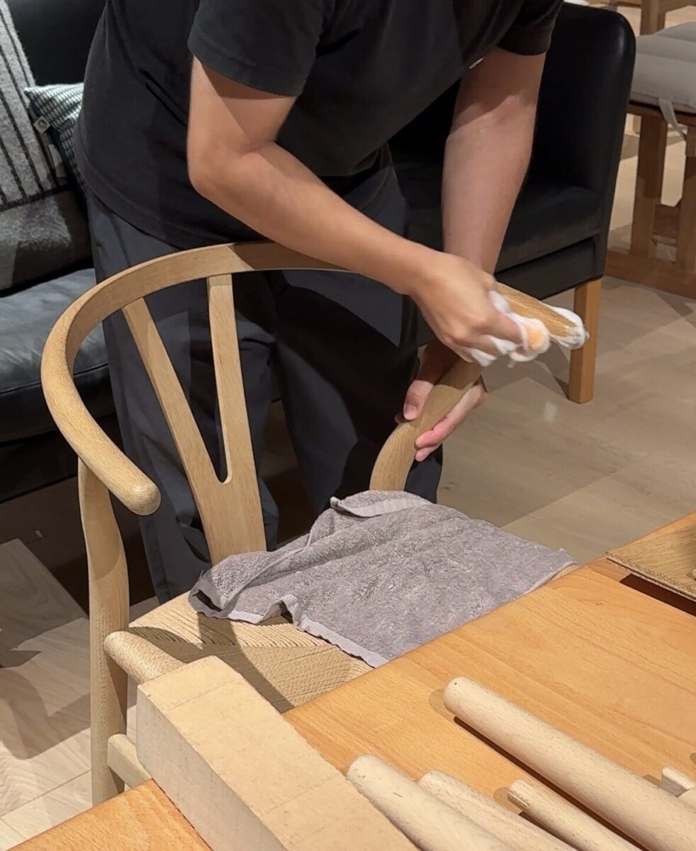 トークイベントのあとは、「Yチェアのソープウォッシュ&オイルメンテナンス実演会」を開催!