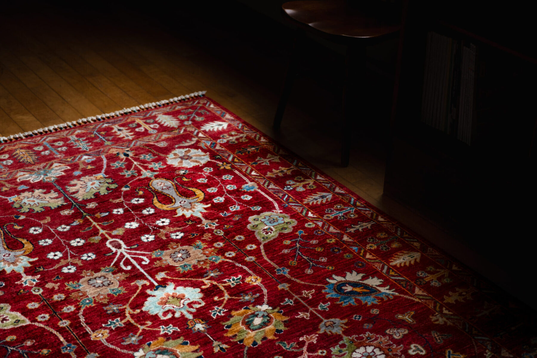 リビングに一枚敷くだけで、空間に深みと静けさをもたらすガズニン絨毯。