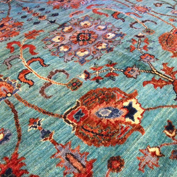 銅を含んだ鉱物や天然の植物から得られる独特の染料で生まれていて他の絨毯にはない「さわやかさ」を感じます。