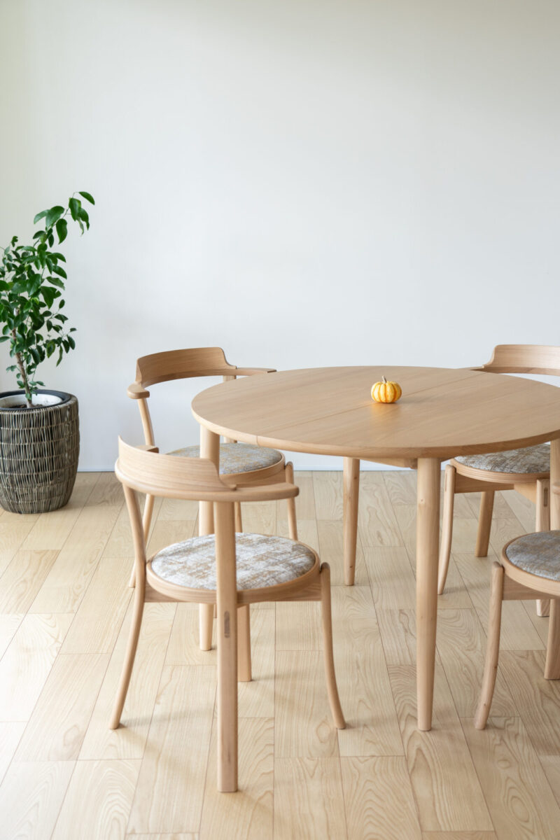 マム ダイニング EXテーブルΦ105 と ルントオムチェアー(座張)