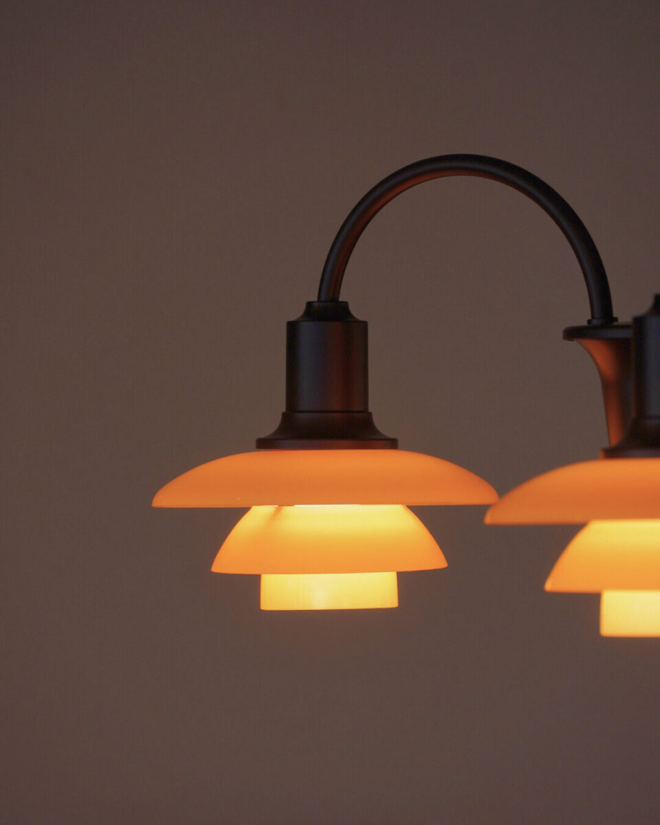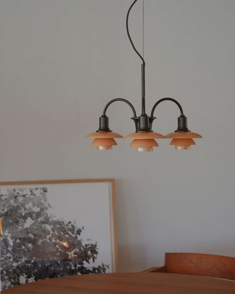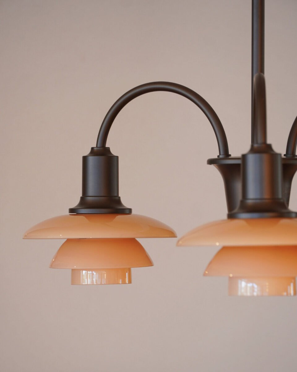 シェードはルイスポールセンが1930年代に使用していたガラスを参考に生み出した「ダスティー・テラコッタ」