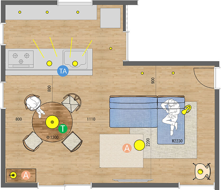 家具の配置に伴う「生活動線の確認」はもちろん、ご希望があれば「照明計画」のご提案も承っております。